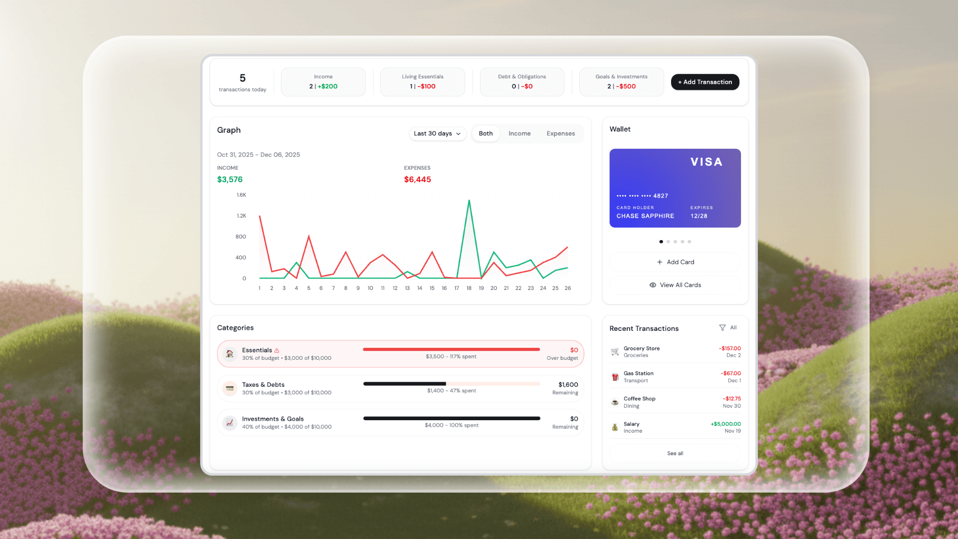 Plan your income, connect your bank (or track manually), and always know how much you can spend - set up in 60 seconds, not hours.